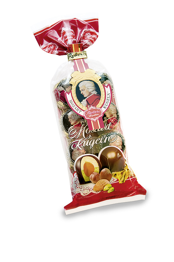 Horká a mliečna čokoláda plnená pistáciovým a mandľovým marcipánom a lieskovoorechovým nugátom.
